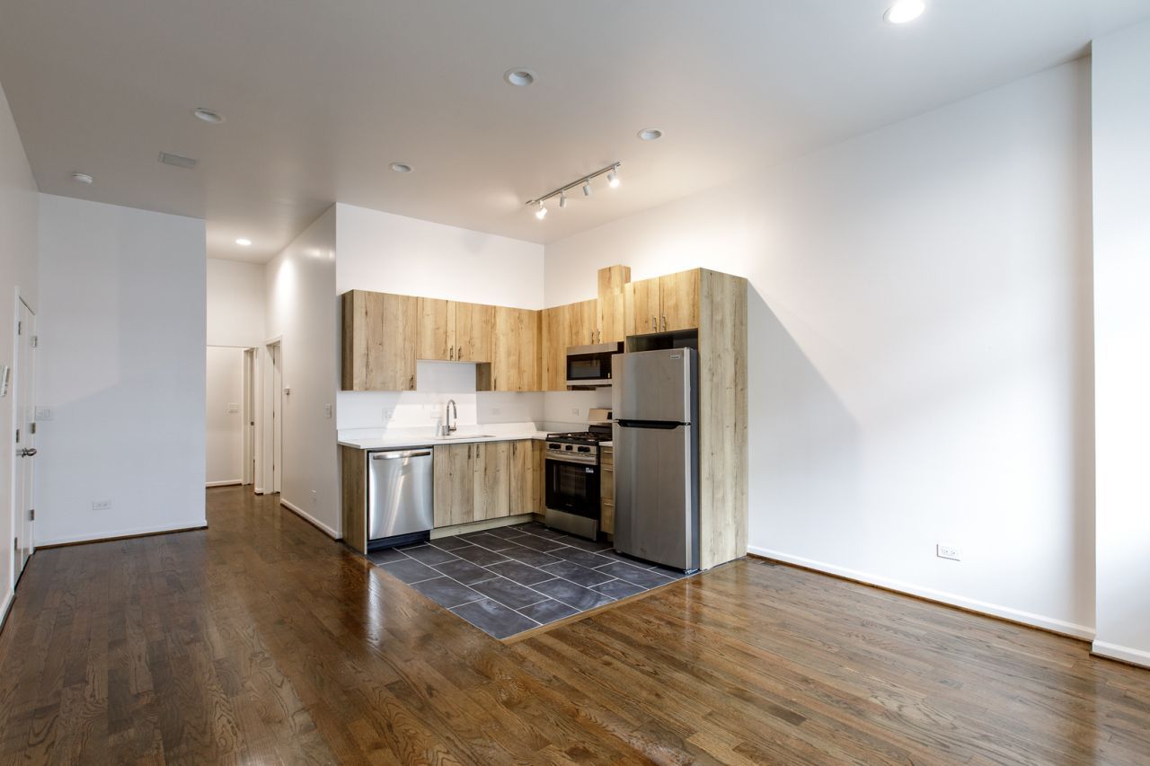 Available April 1st. Brand new renovation in the heart of the Illinois Medical District. This bright and spacious 2-bedroom, 2-bath apartment features a modern open-concept kitchen, dining, and living area, creating a comfortable and functional layout for everyday living and entertaining. Be the first to live in the unit following the complete renovation. The apartment offers hardwood floors, new windows, and abundant natural light throughout. The kitchen is equipped with brand-new stainless steel appliances, including a gas oven, refrigerator, dishwasher, and microwave, along with contemporary finishes and ample cabinet space. Both bedrooms are spacious, with the primary bedroom featuring a walk-through closet that leads to a private ensuite bathroom with exceptional tile work and a full bathtub. The second bathroom also includes a bathtub and updated finishes. Additional highlights include an in-unit washer and dryer with storage in the laundry closet, central heat and air conditioning, and street parking. Conveniently located near grocery stores and the restaurants and shops along Taylor Street, including neighborhood favorite Sweet Maple Cafe. The property also offers convenient access to the Chicago Transit Authority, providing easy commuting throughout the city. Utilities not included in rent.