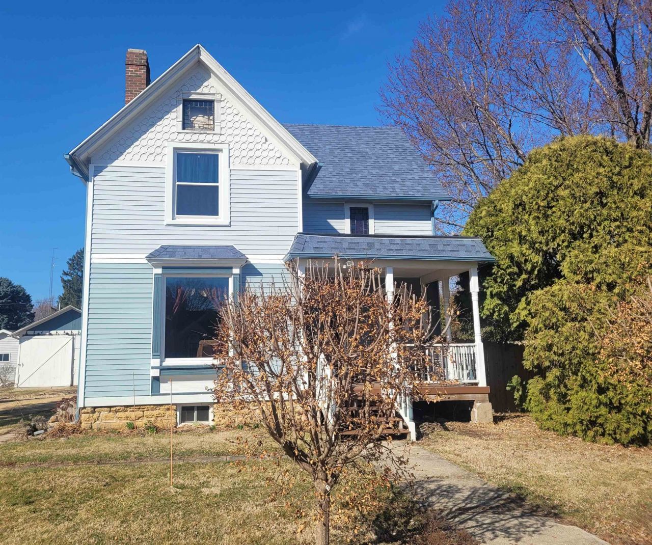 This totally updated historic victorian in a quaint small town is waiting for you and your family. The home has all of the updated modern conveniences and so many hardwood details and tons of charm. The detached garage has room to park, have storage, work room, & workbench. The fully fenced back yard is great for kids, pets, privacy. It also features raised gardens, grapes, rhubarb, flowers, trees and more. Enter the back door for a first floor laundry and a full bathroom. Next enter large eat-in kitchen that features soft close drawers and cabinets, an island w/sink and stove, quartz countertops & granite sinks, and modern appliances like an oven with proofer. Walk through the main level which boasts a living room with fireplace (decorative) and pocket doors on both sides if you like privacy, a warm and comfortable den and a wonderful dining room with leaded glass china cabinet. The front porch welcomes guests to a gorgeous hardwood antique front door coming into a decorative hand done woodworked foyer, or sit and enjoy nature on the porch. Come in and climb the beautiful staircase to three nice sized bedrooms and a 1/2 bath. One of the bedrooms has a great area for an office, or gameroom or toy room, or possibly a dream walk in closet you decide!. This is a don't miss opportunity for a one of a kind home!! Don't miss it!